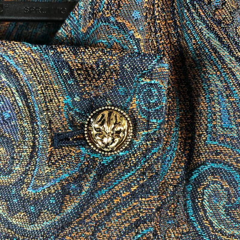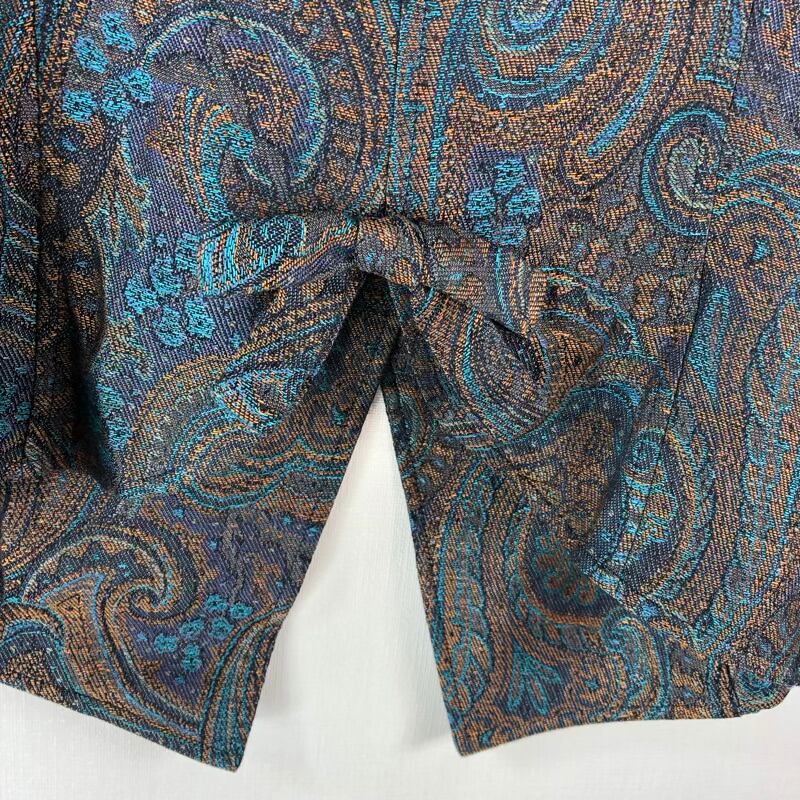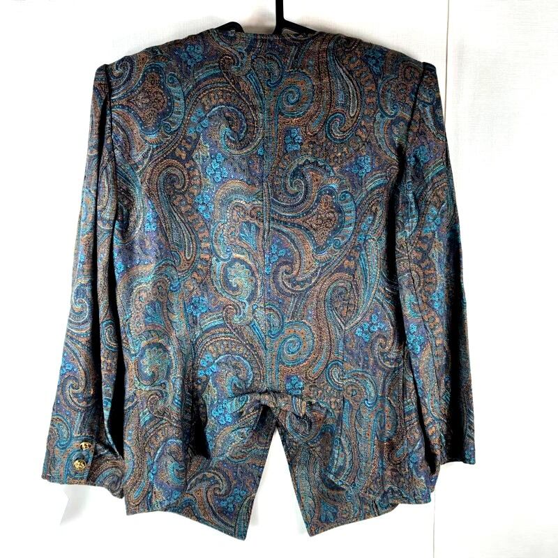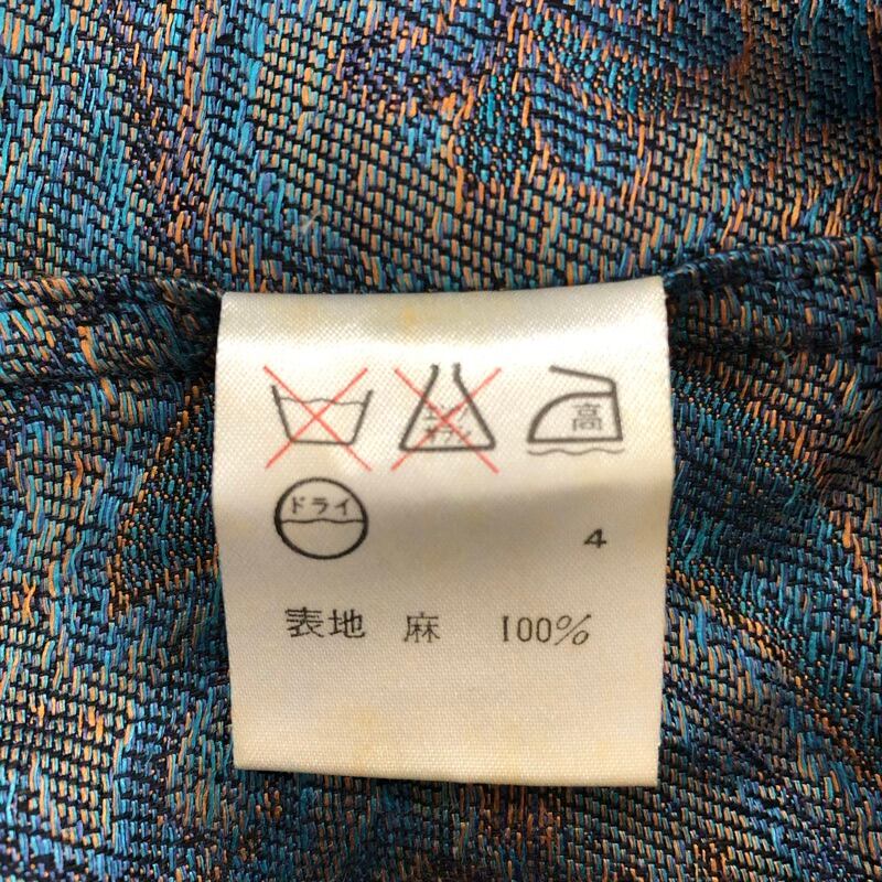 ウンガロパラレルパリ UNGARO parallele paris ジャケット アラベスク柄 ゴールドボタン バックリボン 肩パッド 茶 ブルー ネイビー系 9サイズ 915819