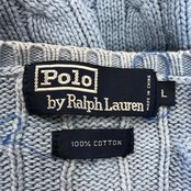 ポロバイラルフローレン Polo By Ralph Lauren ニット 長袖 Vネック ケーブル編み 綿100% ロゴ刺繡 水色 Lサイズ 915841