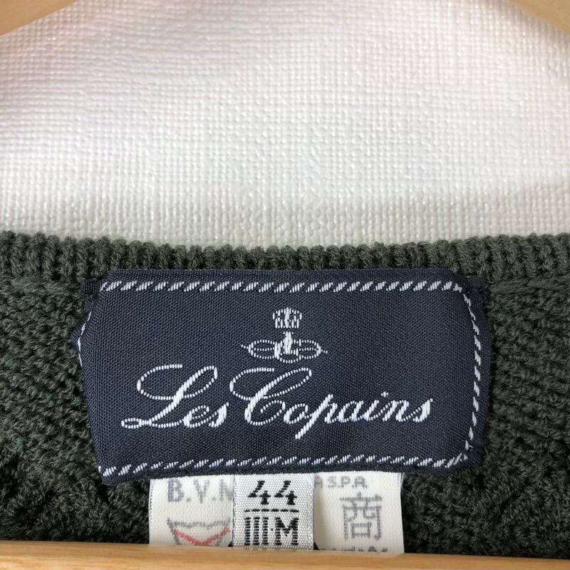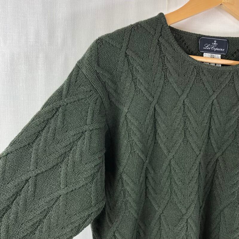 レコパン LES COPAINS ニット 長袖 ケーブル編み サイドスリット タグ付き 深緑 カーキ 44サイズ 916101