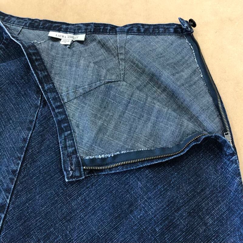 ローラアシュレイ Laura Ashley スカート ロング 花刺繍 ジーンズ生地 サイドファスナー 綿100% 紺 13サイズ 916363