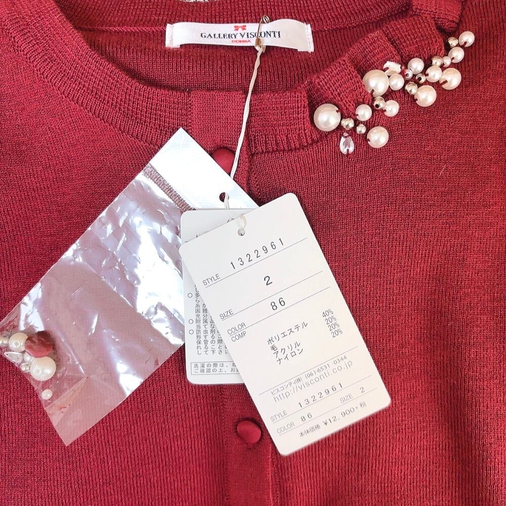ギャラリービスコンティ GALLERY VISCONTI 新品タグ付き カーディガン パール 赤 2サイズ 916528