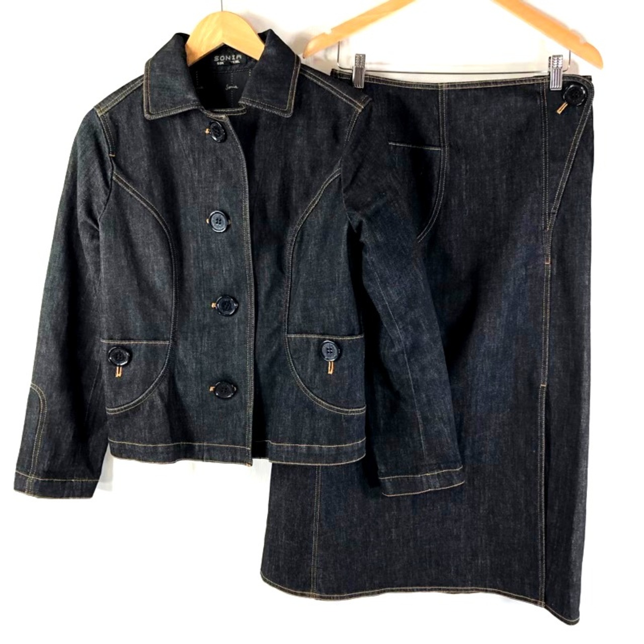 ソニアリキエル SONIA RYKIEL セットアップ ジャケット ロングスカート スリット ジーンズ生地 裏生地デザイン 紺 46サイズ 917245