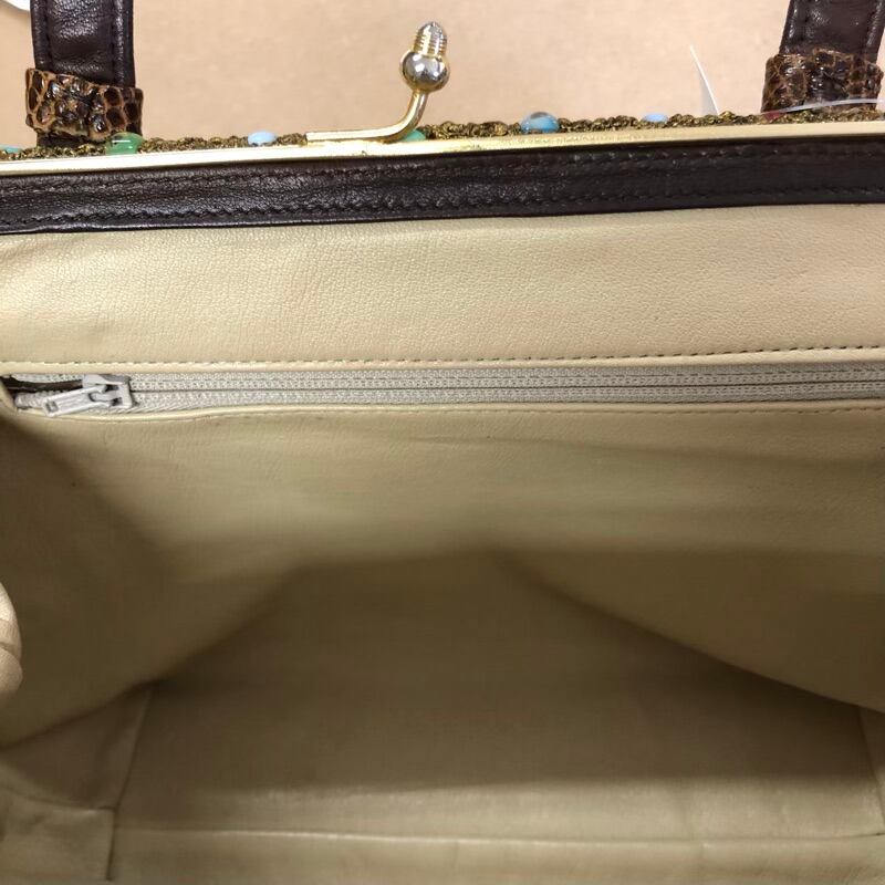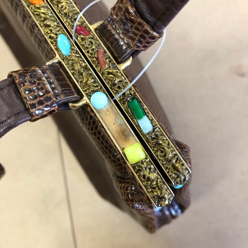ワコウ WAKO 銀座和光 リザードハンドバック カラーストーン 内側チャック付きポケット ブラウン 917262
