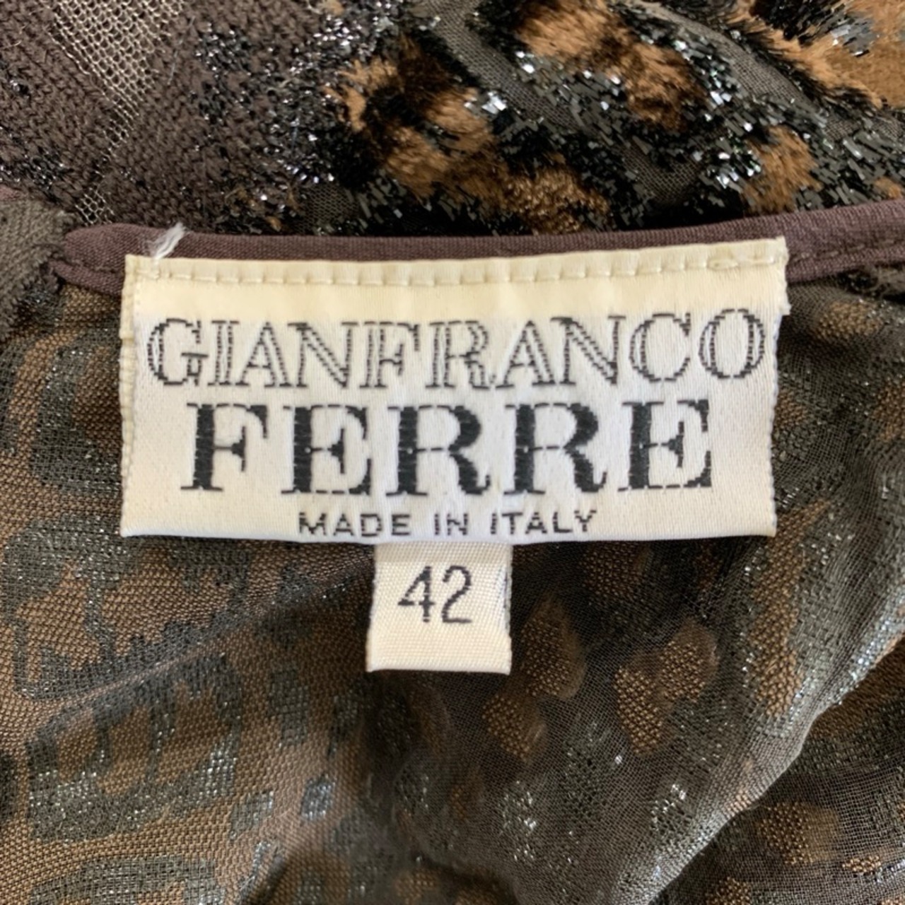 ジャンフランコフェレ Gianfranco Ferre ワンピース ノースリーブ ラメ シースルー イタリア製 茶色 42サイズ 917316