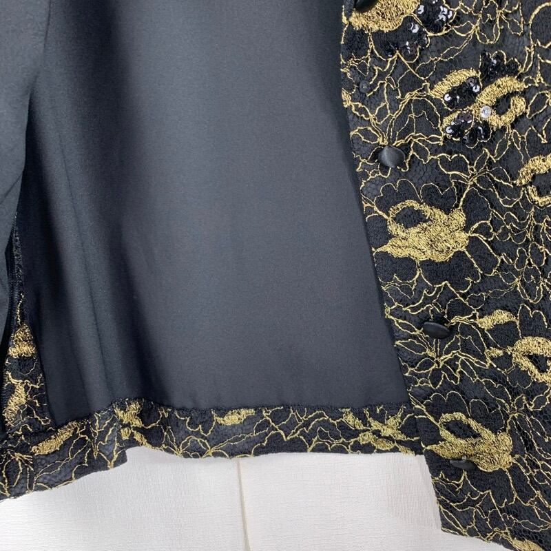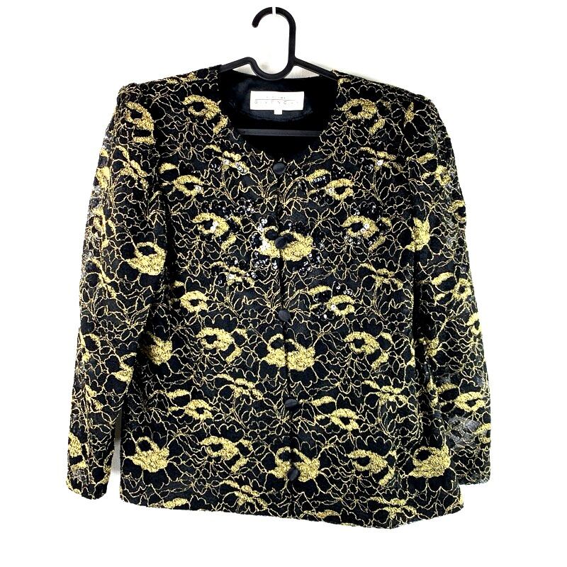 ジバンシー GIVENCHY ジャケット 袖シースルー スパンコール 肩パッド ベルト付き 黒 ゴールド 14サイズ 917318
