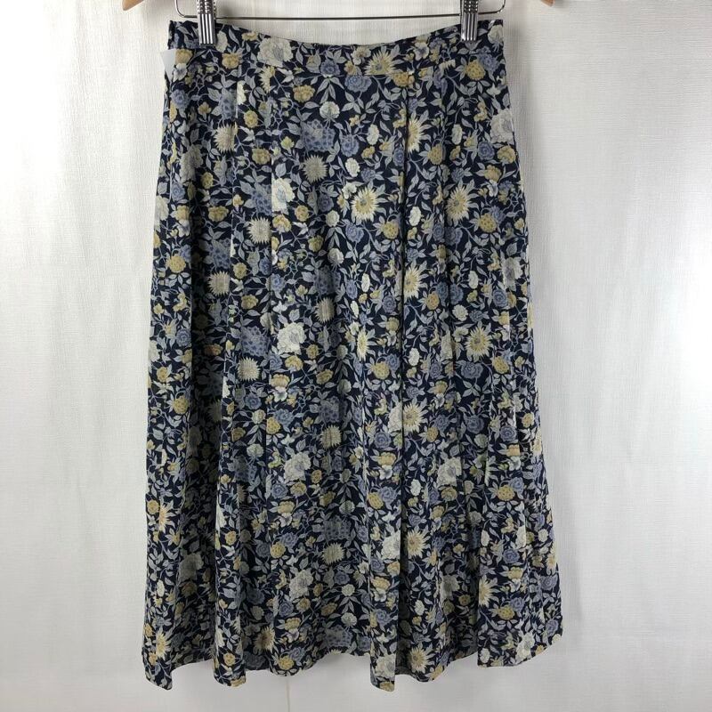 バーバリー BURBERRYS セットアップ 花柄 半袖 肩パッド バックボタン 薄手 ロングスカート ネイビー 11サイズ 917670