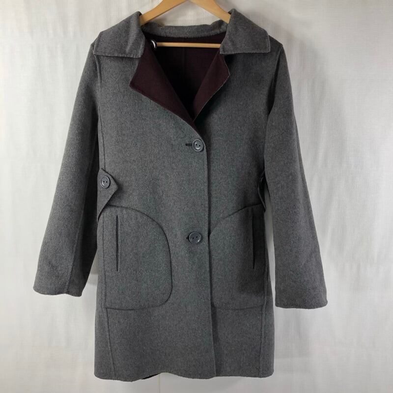 ドゥクラッセ DoCLASSE リバーシブルコート ロング ボタン 腰ひも サイドポケット 赤紫 グレー 15サイズ 917742