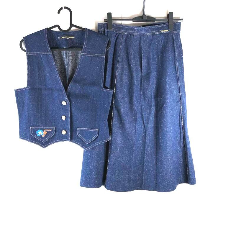 レオナール LEONARD FASHION セットアップ ベスト ロングスカート 花刺繍 ジーンズ生地 綿100% 青系 13AB3サイズ 918135