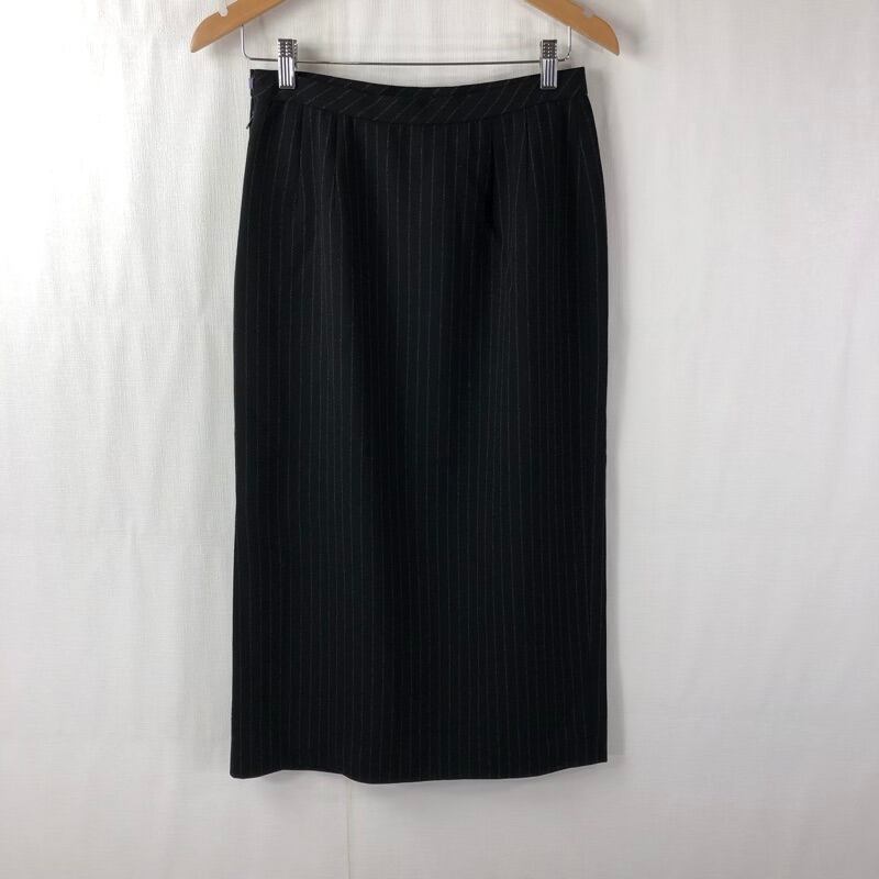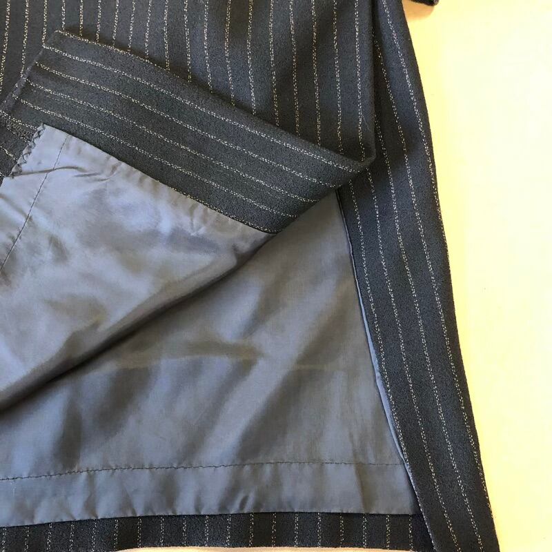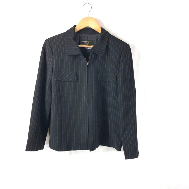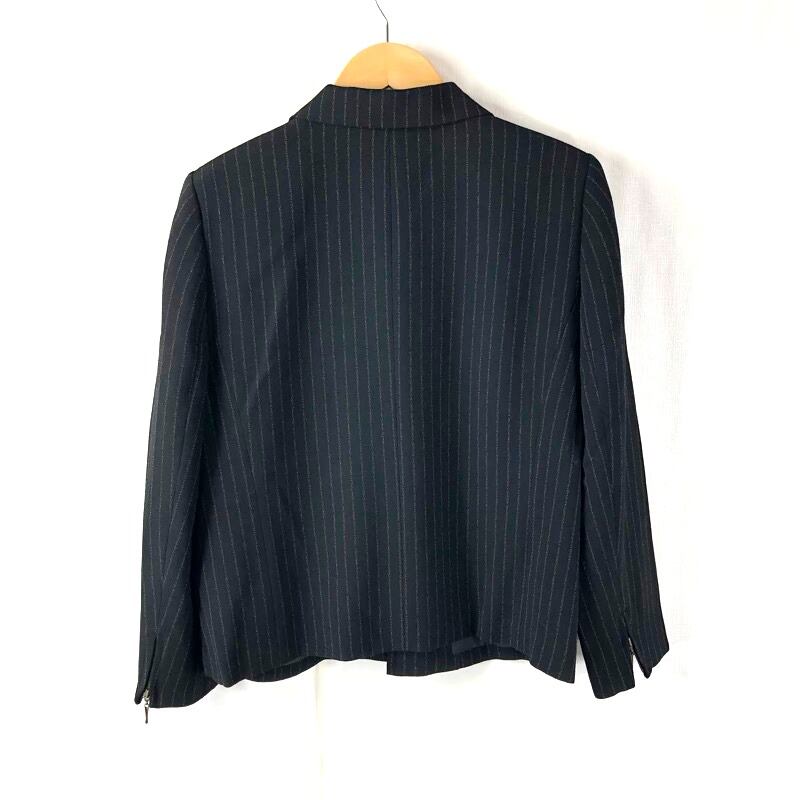 レリアン Leilian セットアップ ロングスカート チャック 袖チャック ストライプ柄 肩パッド 黒 13+サイズ 918185