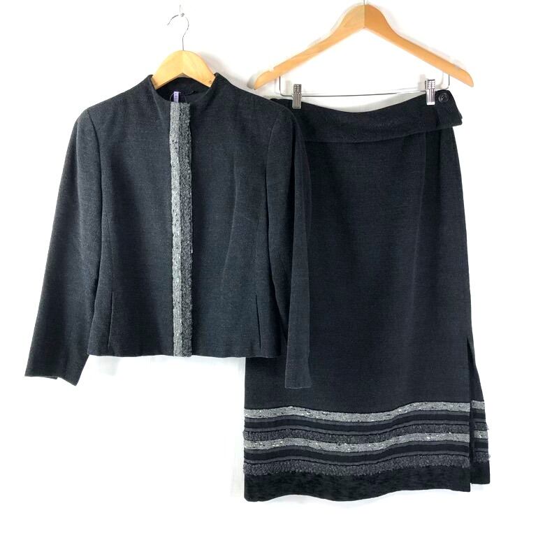 レリアン Leilian セットアップ ロングスカート 裾デザイン スナップボタン 襟なし ダークグレイ 9サイズ 918187
