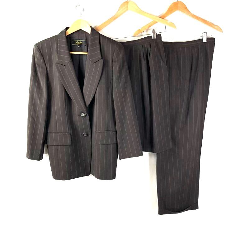 レリアン Leilian スーツ 3点セット パンツ スカート ストライプ 飾りボタン ブラウン 11サイズ 918189