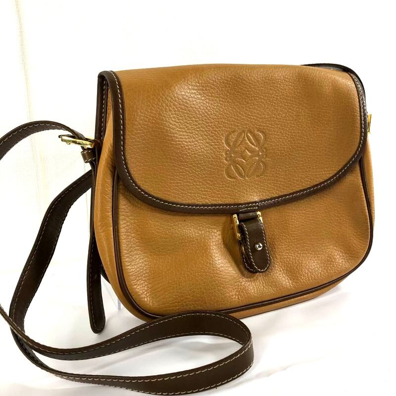 ロエベ LOEWE ショルダーバック マグネットボタン 内側チャック付きポケット 金バックル キャメル 918546
