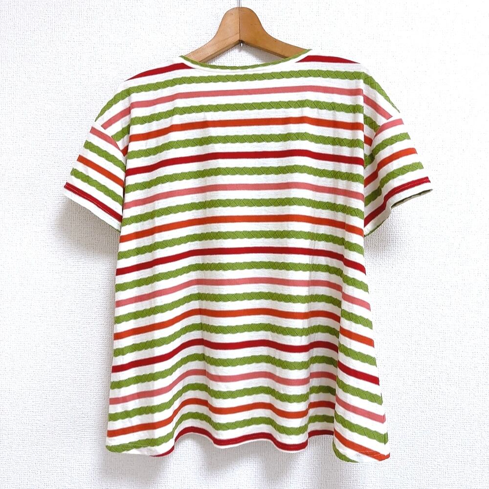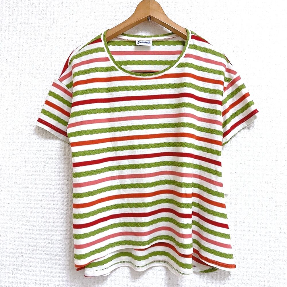 ホコモモラ Jocomomola Tシャツ ボーダー 緑x赤 x白 40サイズ 920434