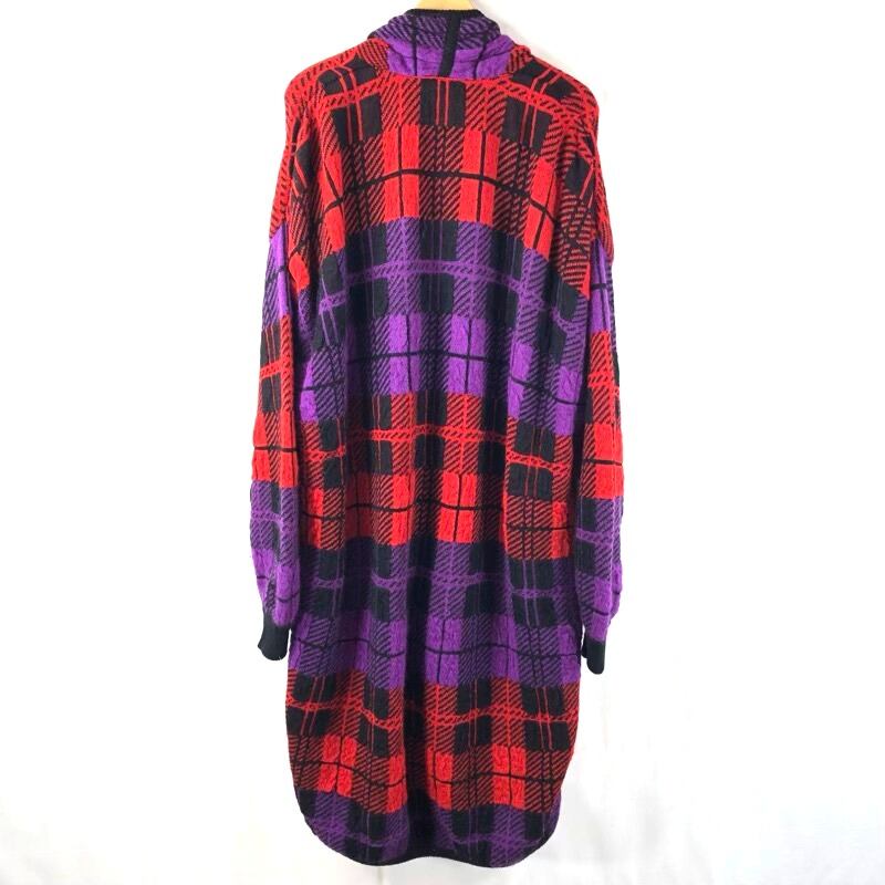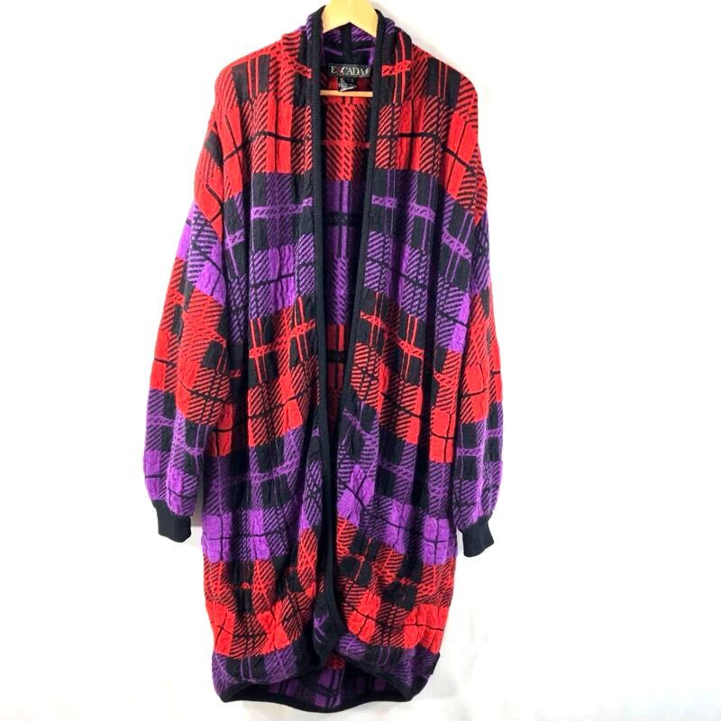 エスカーダ ESCADA カーディガン ロング チェック柄 リブ 赤 紫 38サイズ 920517