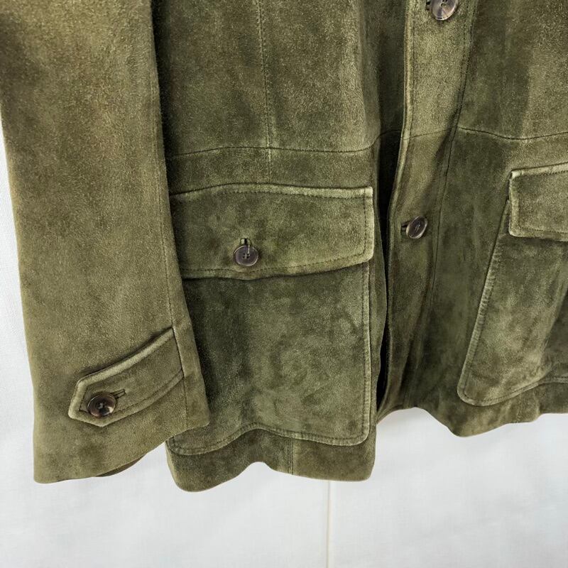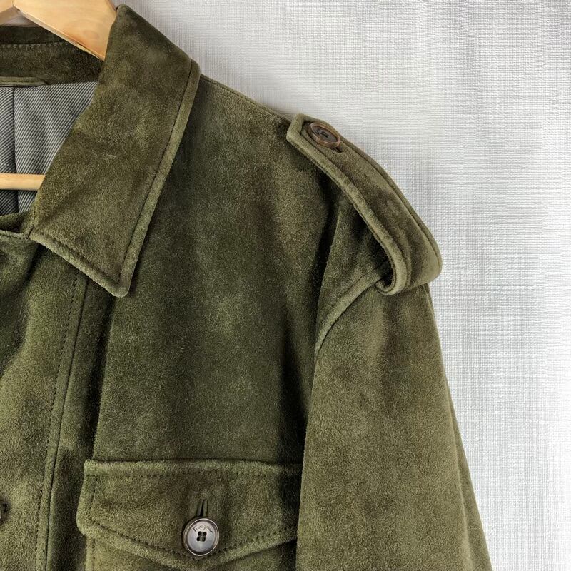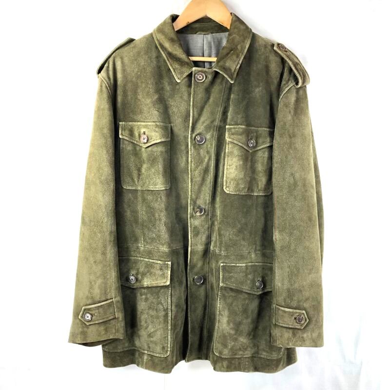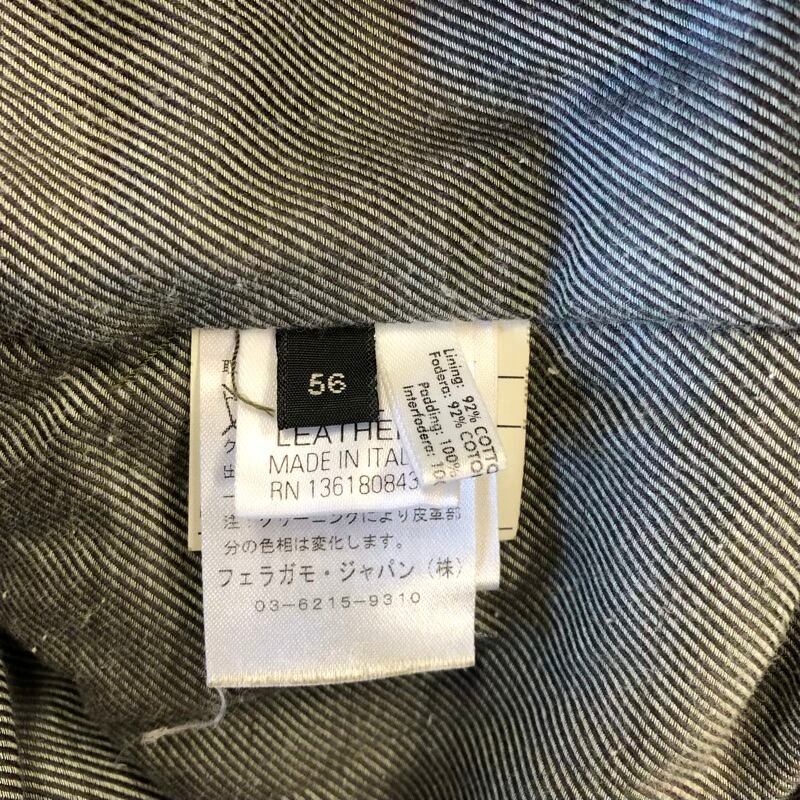 フェラガモ Ferragamo レザーコート イタリア製 ロゴボタン ポケット カーキ系 56サイズ 920520