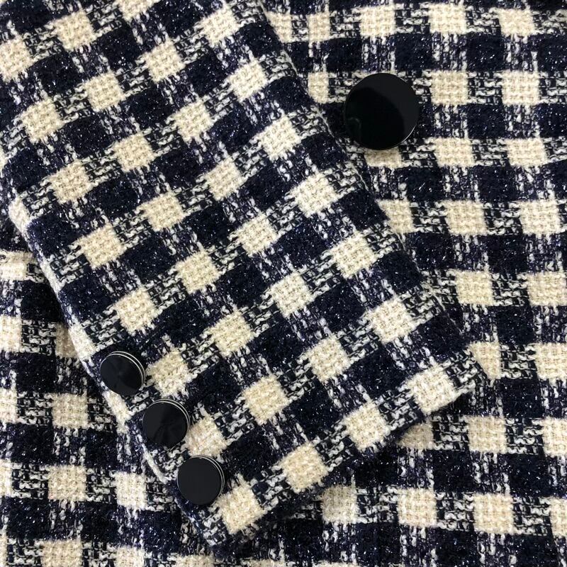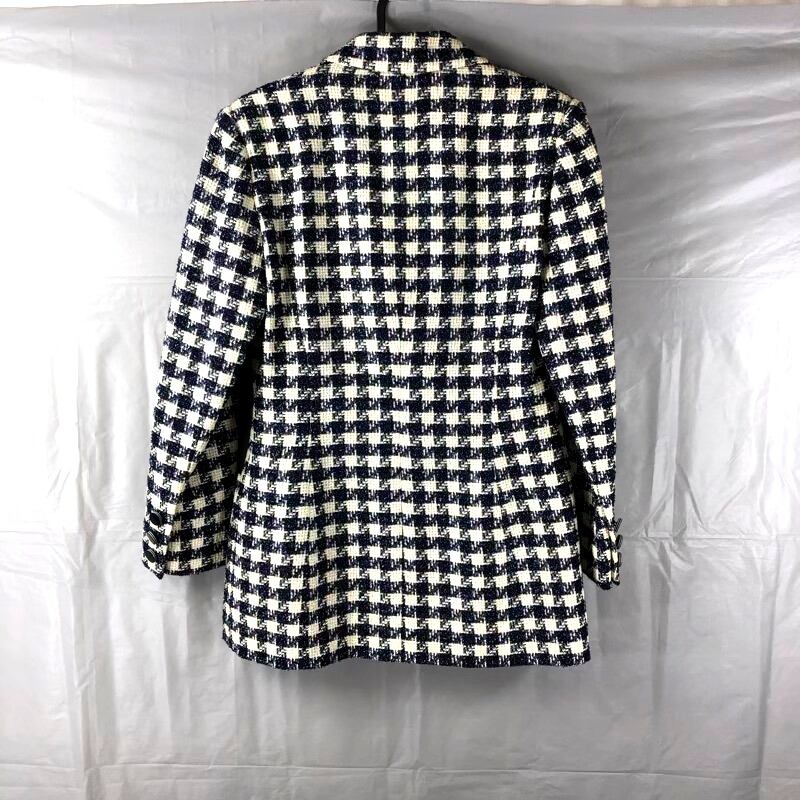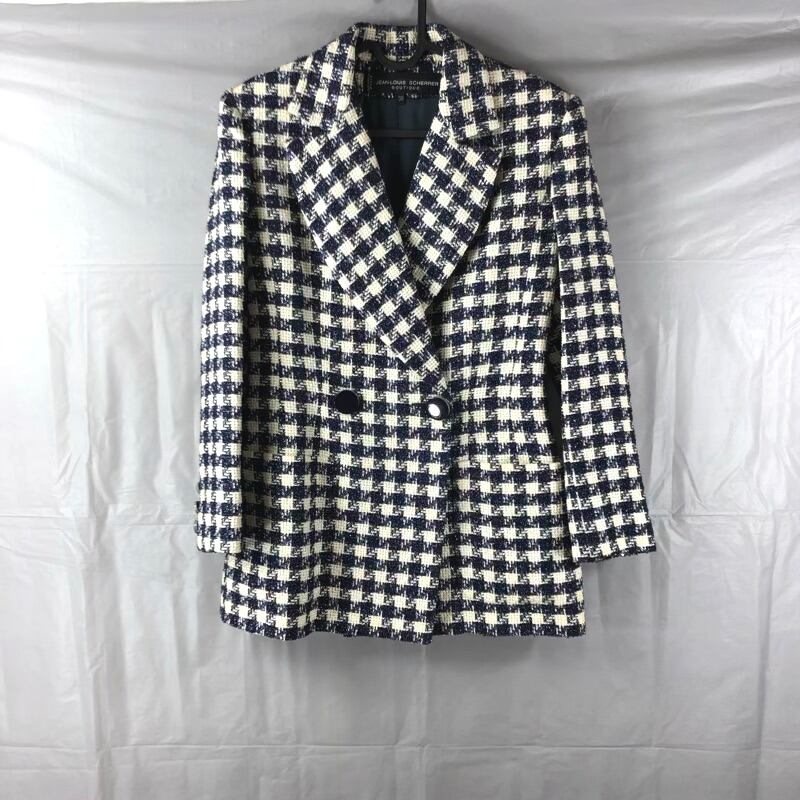 ジャンルイシェレル JEAN-LOUIS SCHERRER コート チェック ラメ ポケット 肩パッド 白紺 38サイズ 920525