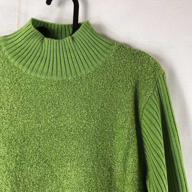 ギャラリービスコンティ GALLERY VISCONTI ニット タートルネック 長袖 シャギー ラメ リブ リボン袖 黄緑 920672