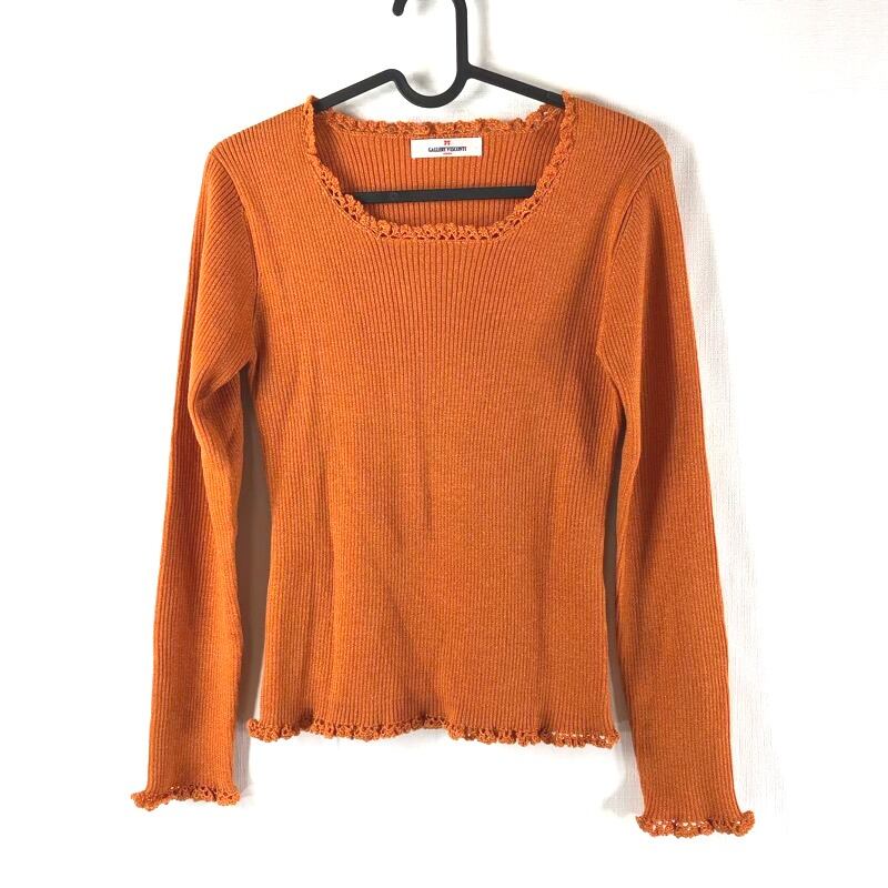 ギャラリービスコンティ GALLERY VISCONTI ニット 薄手 長袖 ラメ レース編み オレンジ 2サイズ 920716