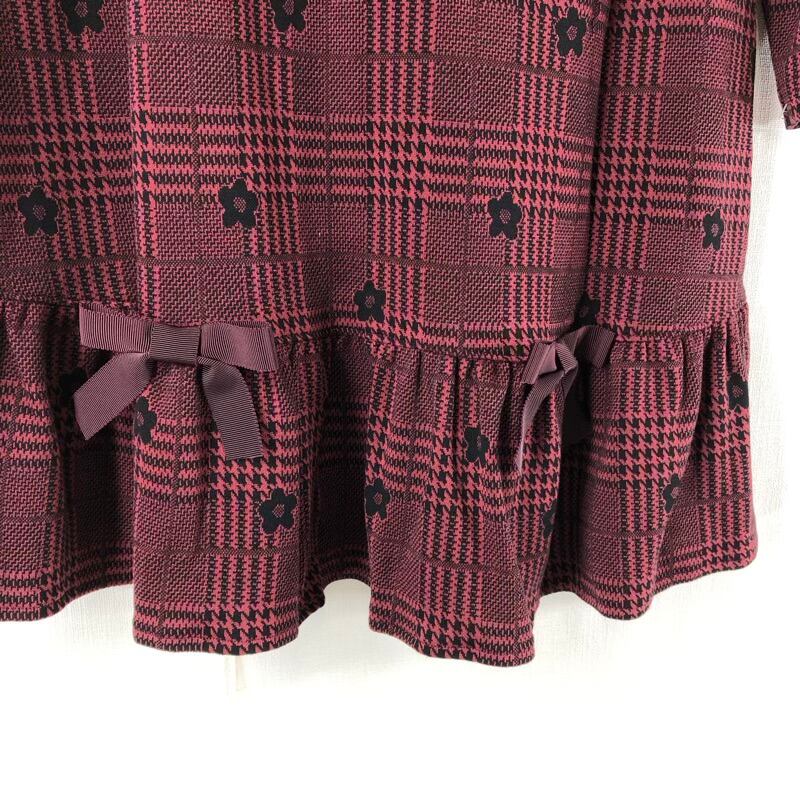 ギャラリービスコンティ GALLERY VISCONTI チュニック 長袖 チェック柄 花柄 リボン フリル 冬 タグ付き ボルドー系 2サイズ 920789