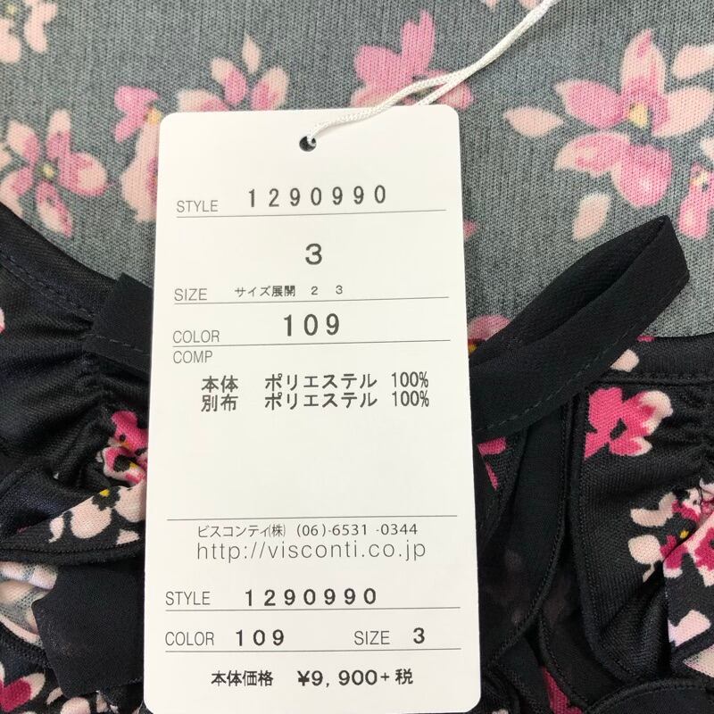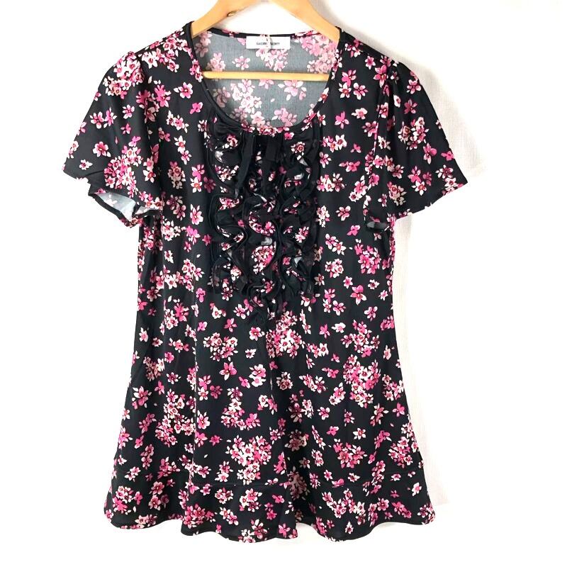 ギャラリービスコンティ GALLERY VISCONTI チュニック 春 半袖 リボン フリル 花柄 タグ付き 黒 ピンク 3サイズ 920803