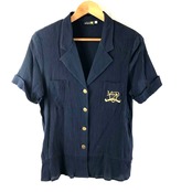 マクダビッド McDavid セットアップ 半袖ジャケット 肩パット ロングスカート 薄手 ワンポイント刺繍 金ボタン 裏地付き イタリア 紺 44サイズ 920929 | Ethical Store