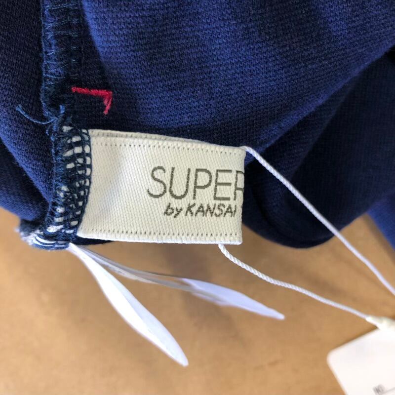 スーパーレディ SUPER LADY by KANSAI YAMAMOTO パンツ タグ付き 腰ゴム ポケット 裾デザイン 紺 青 LLサイズ 921483
