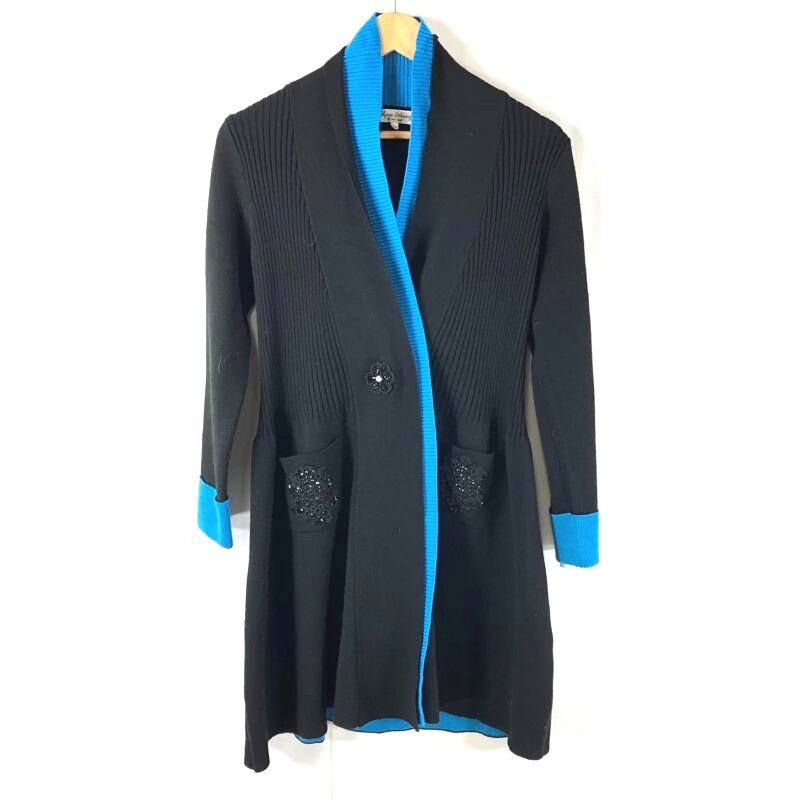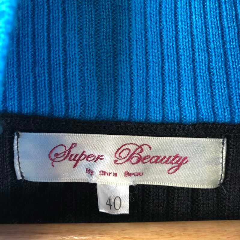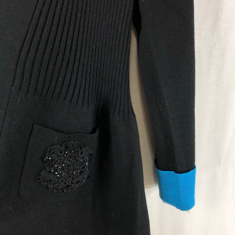 スーパービューティ Super Beauty カーディガン ニット ロング スパンコール ビーズ 飾りボタン ポケット 水色 黒 40サイズ 922991