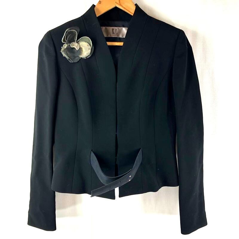 カール・ラガーフェルド KARL LAGERFELD セットアップ ジャケット スカート スリット ベルト コサージュ付き 綿 黒 923298