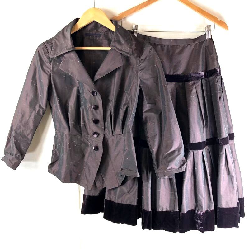ラヴァーズバースデー Lover’s Birthday セットアップ ジャケット 丸ボタン 袖スリットスカート 異素材 ベロア 裏地付き 日本製 ブラウン系 38サイズ 923306