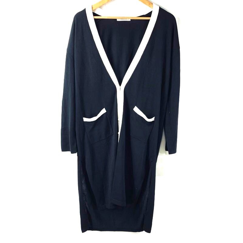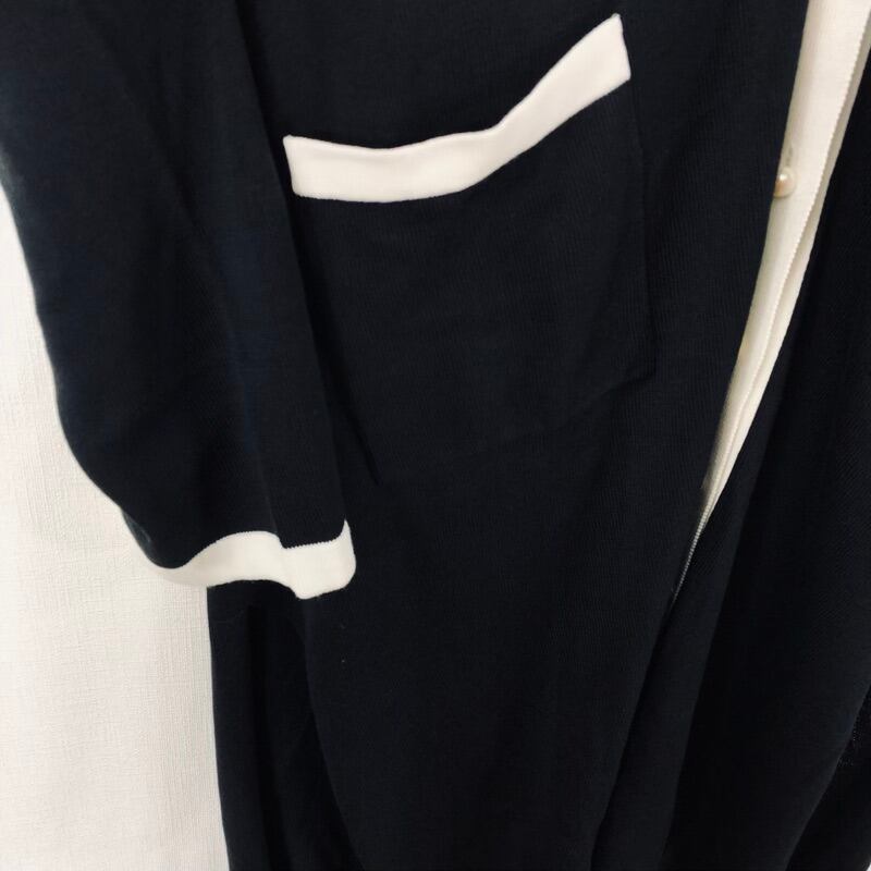 インゲボルグ INGEBORG カーディガン ロング 配色デザイン 飾りボタン スリット ポケット タグ付き 白黒 4サイズ 923470