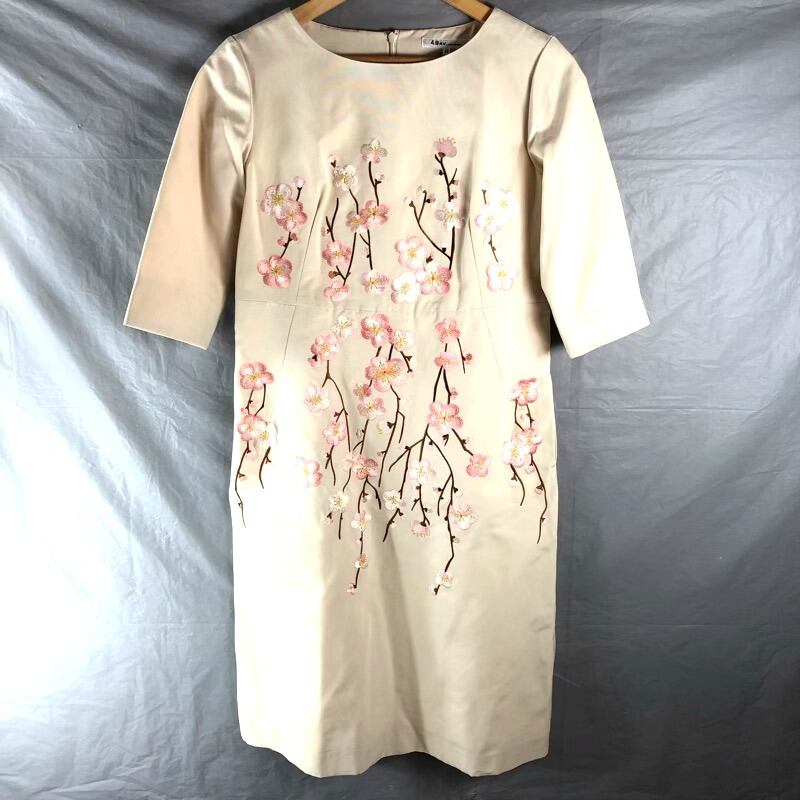 フォーティーナインアベニュージュンコシマダ 49AV.junko shimada ワンピース 花刺繍 バックファスナー 五分袖 タグ付き ベージュ 40サイズ 923532