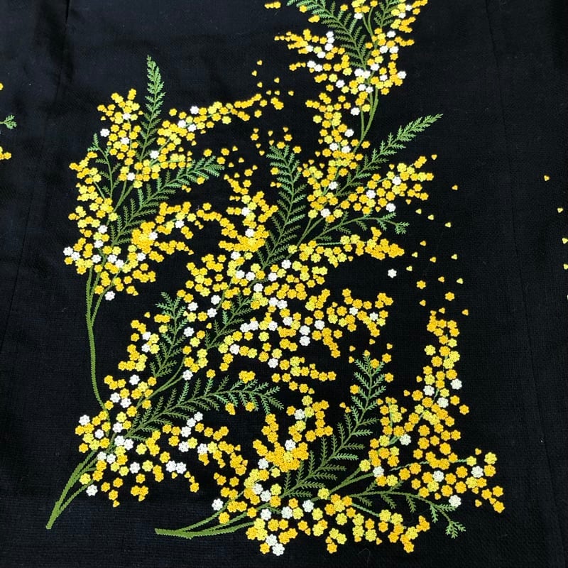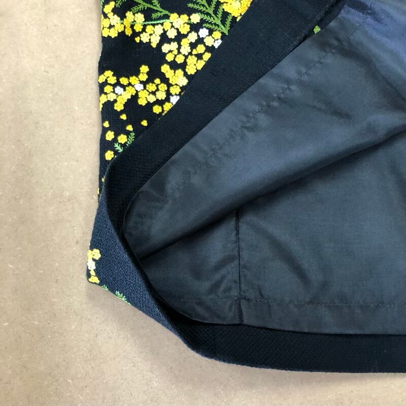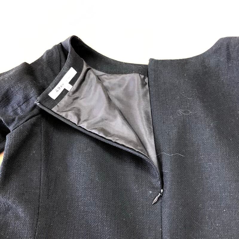フォーティーナインアベニュージュンコシマダ 49AV.junko shimada ワンピース 花刺繍 バックファスナー 五分袖 綿 麻 黒 40サイズ 923555