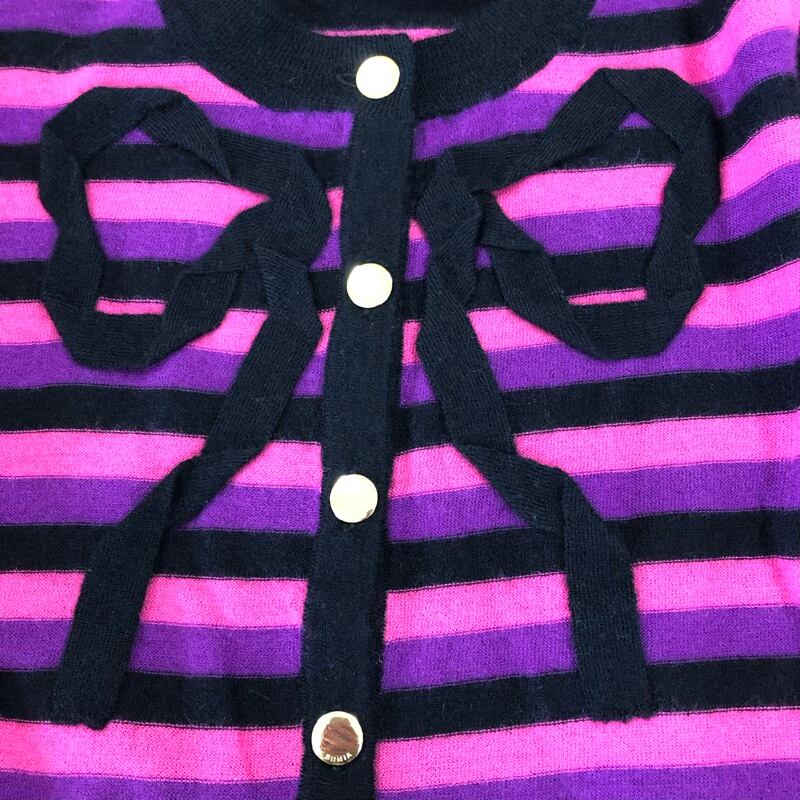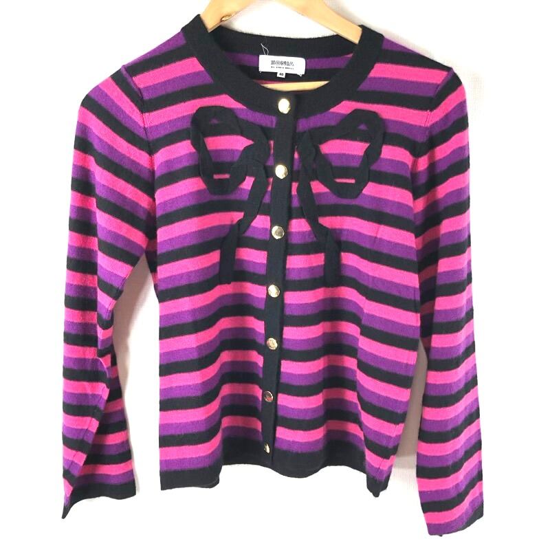 ソニアバイソニアリキエル SONIA BY SONIA RYKIEL カーディガン 長袖 リボン 金ボタン カシミア100% ボーダー ピンク 黒 紫 40サイズ 924543