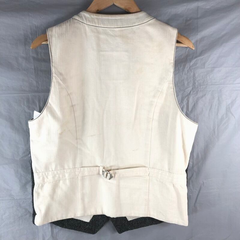 ハリスツイード Harris Tweed ベスト 生地切替デザイン サイドポケット ボタン グレー 白 Lサイズ 924551