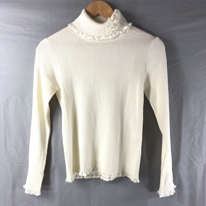 ギャラリービスコンティ GALLERY VISCONTI ニット 長袖 タートルネック ラメ リブ 花飾り レース タグ付き 白 2サイズ 924710