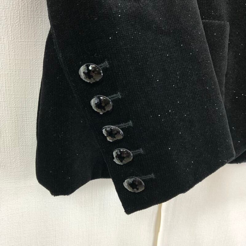 ジャンルイシェレル Jean-Louis Scherrer セットアップ スーツ スカート コーデュロイ ラメ 綿 肩パッド 黒 40サイズ 924721