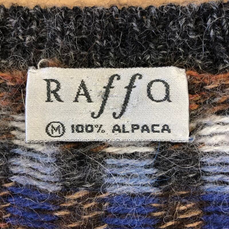 ラファモリーナ RAFFA MOLINA ニット アルパカ100% Vネック 長袖 チェック ブラウン 白 青 Mサイズ 932665