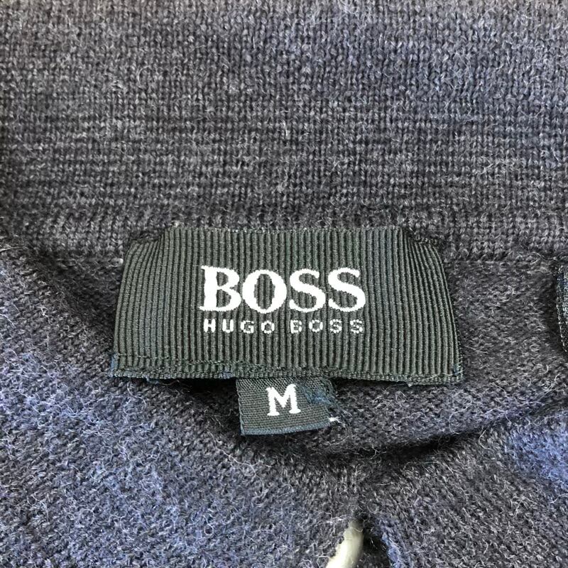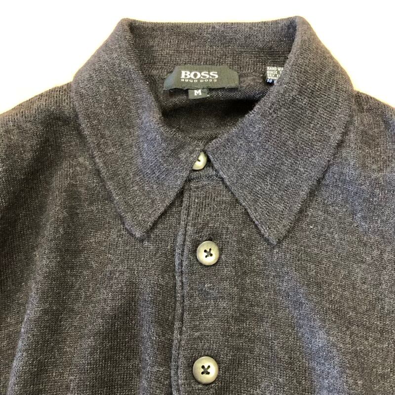 ヒューゴボス Hugo Boss ニット 襟付き 襟ボタン メリノウール 長袖 ダークグレー Mサイズ 932664