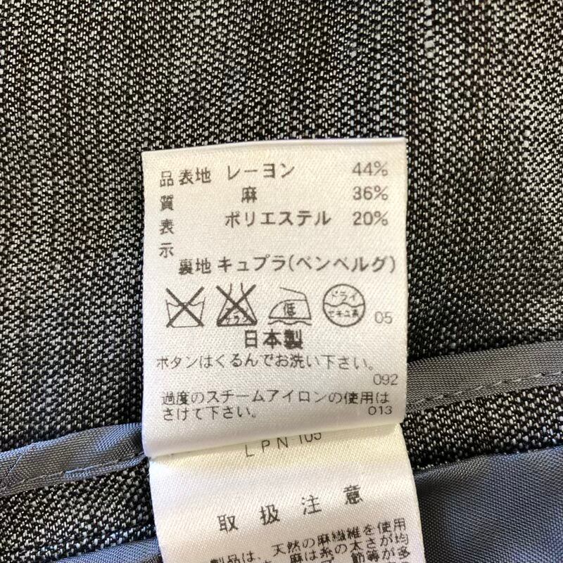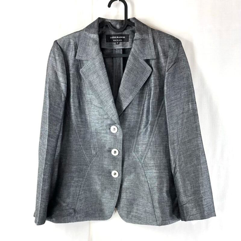 ラピーヌブランシュ LAPINE BLANCHE ジャケット レーヨン 麻 ロゴボタン 肩パッド グレー系 42サイズ 924736