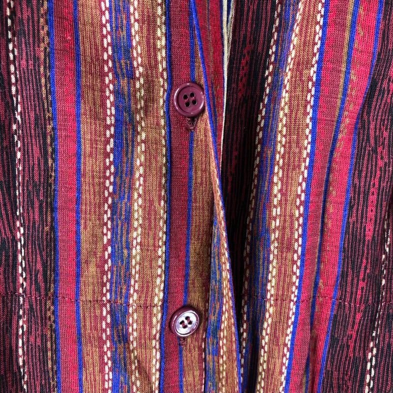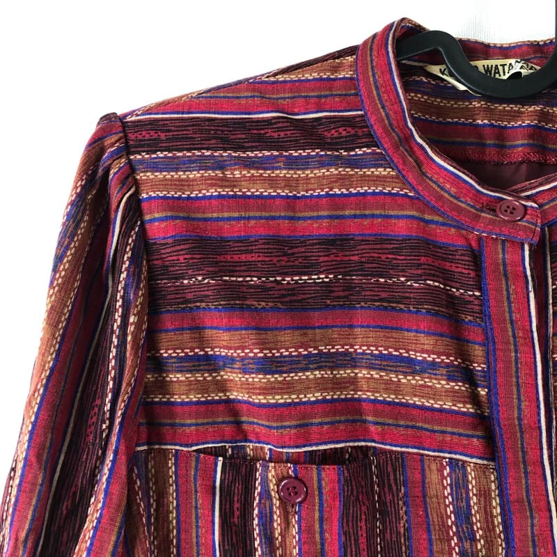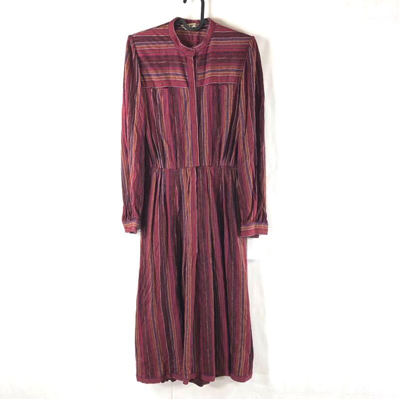 ケンゾーワタナベ KENZO WATANABE ATELIER ワンピース 長袖 ロング ストライプ柄 プリーツ フレア 肩パッド 赤系 924935