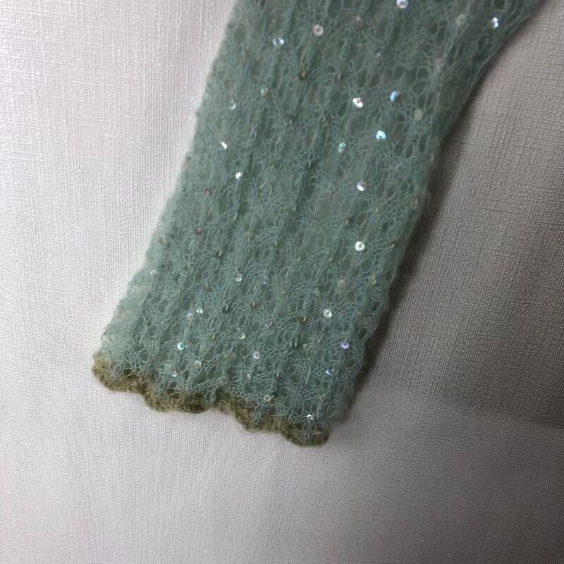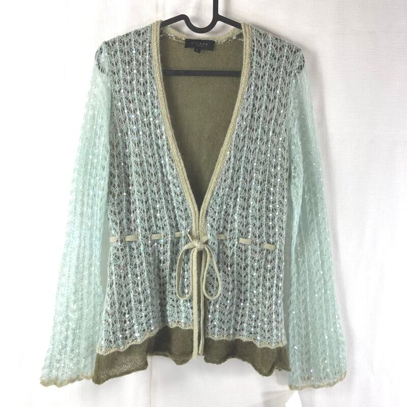 キアーラ CHIARA By De' vo カーディガン モヘア ニット リボン編み スパンコール 緑 水色 Lサイズ 924942