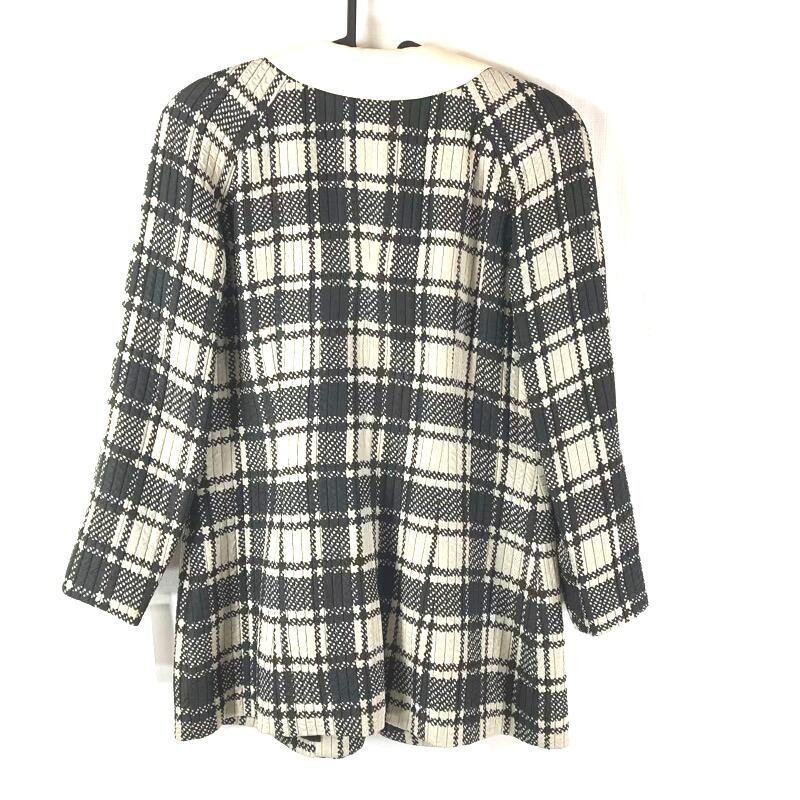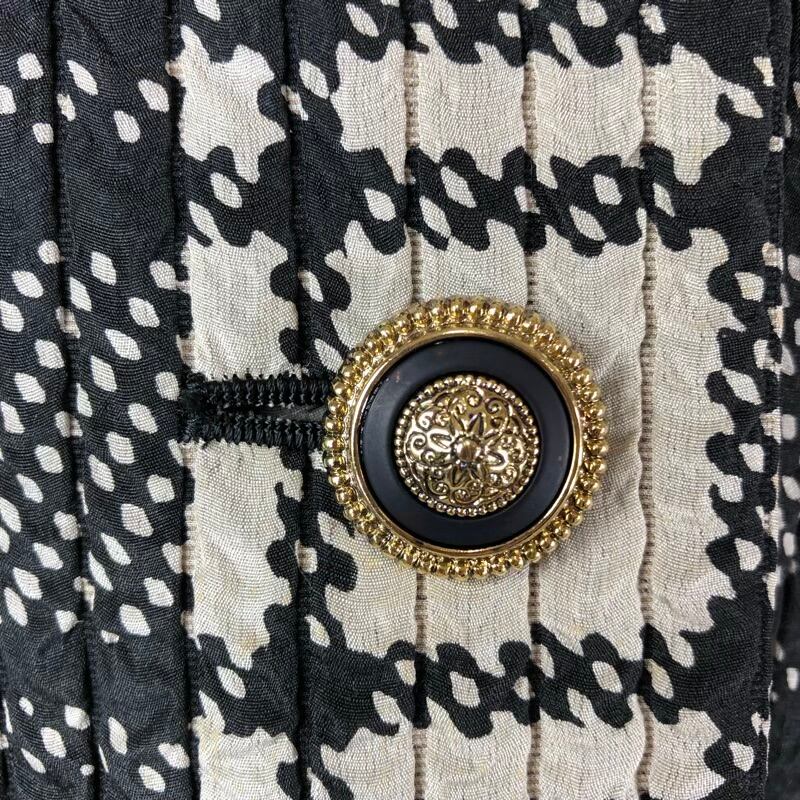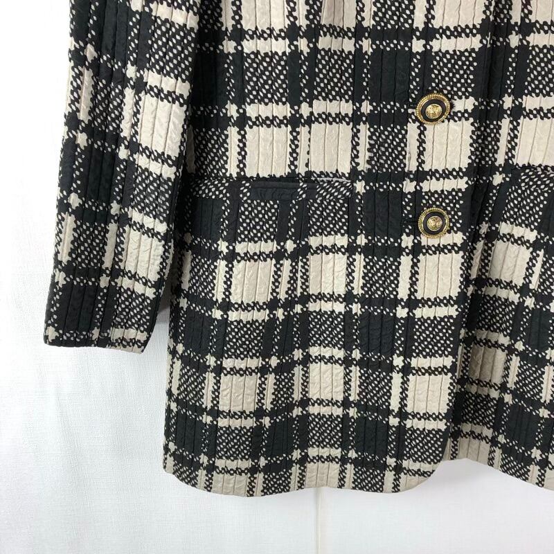 ランチェッティ LANCETTI MILANO ジャケット チェック柄 ゴールドボタン 襟付き 絹 肩パッド 白 黒 40サイズ 925165