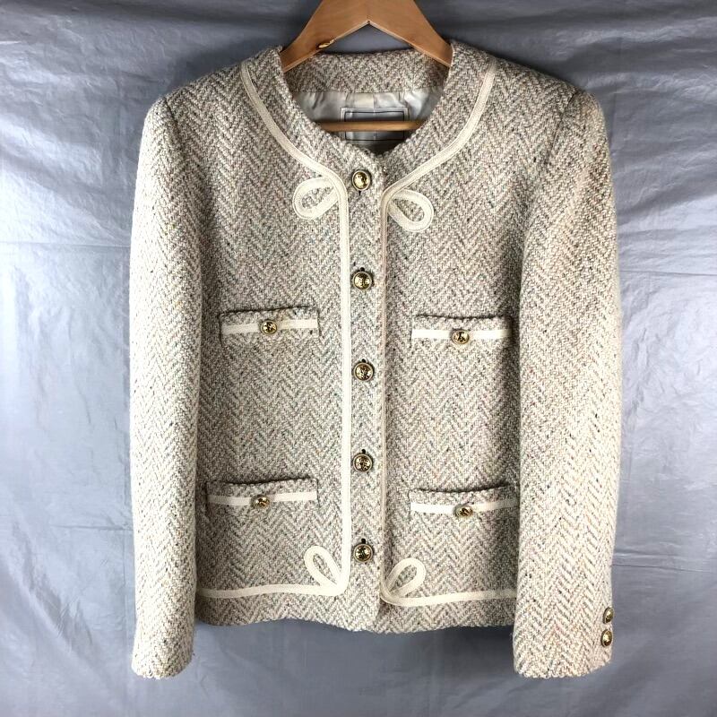 デボラ DEBORAH セットアップ ジャケット スカート 金ボタン サイドポケット 肩パッド 日本製 白 11サイズ 925166