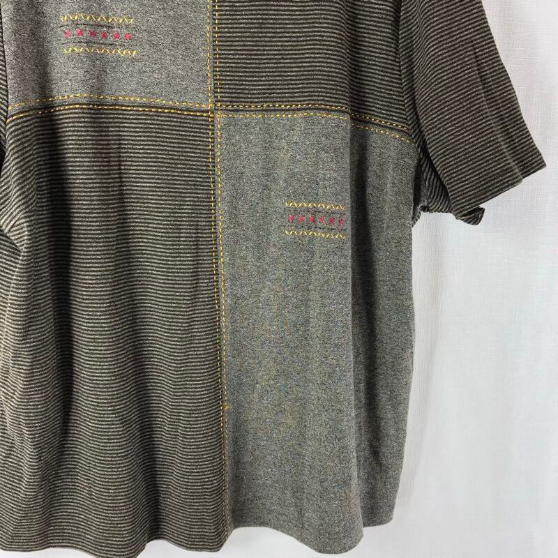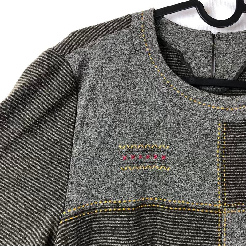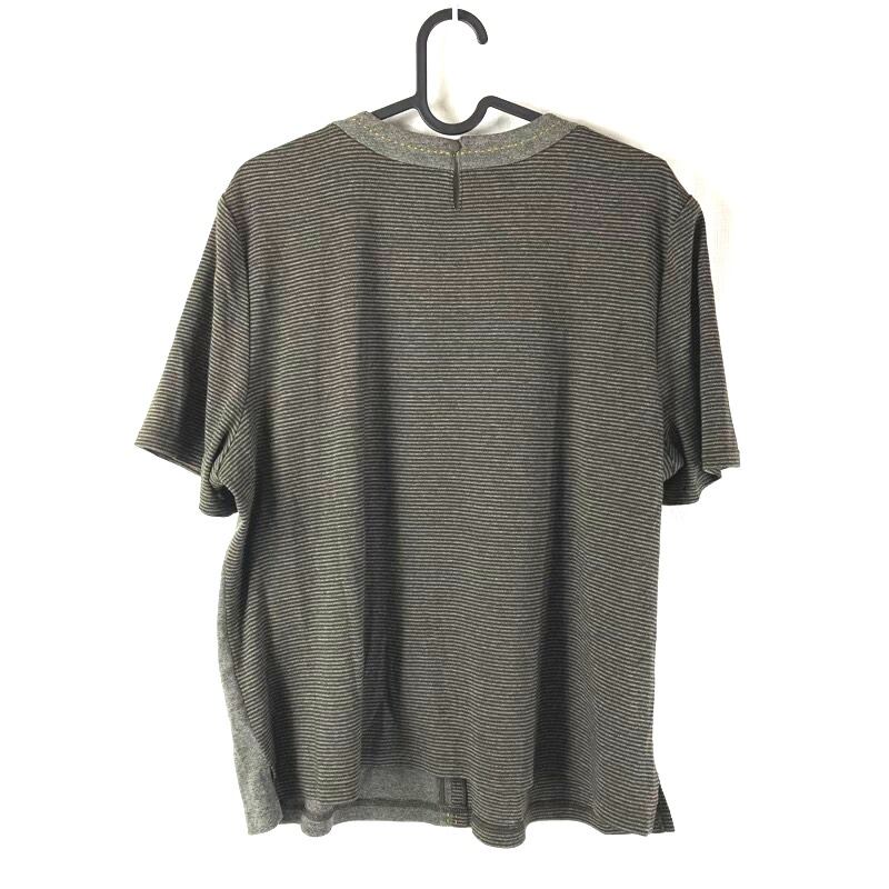 レリアン Leilian カットソー 半袖 ボーダー ステッチデザイン 綿 スリット ブラウン グレー系 15+サイズ 924751