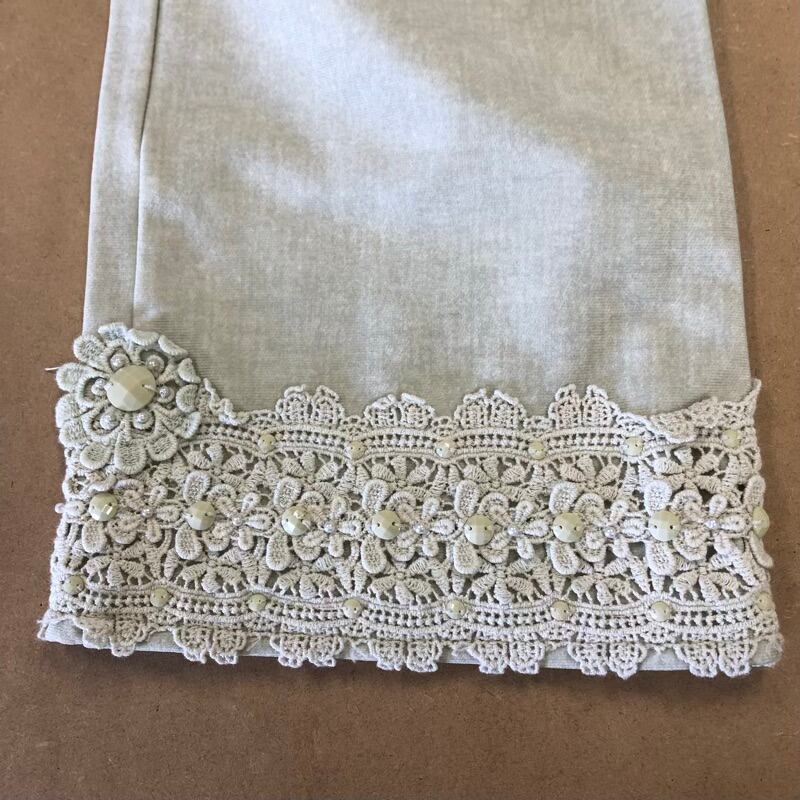 スーパービューティー super beauty パンツ 裾レース スパンコール 花 腰ゴム 裏起毛 ベージュ系 42サイズ 926032