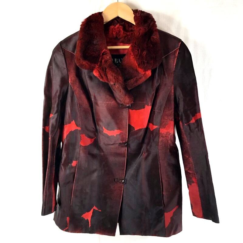 エーシーバング A.C.BANG ジャケット 革 衿元ファー 内ポケット 袖スリット 赤 ブラウン 926043