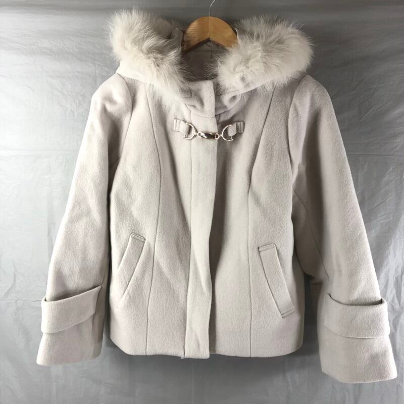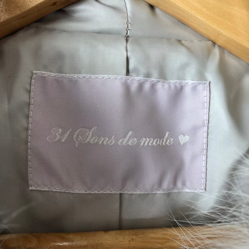 トランテアンソンドゥモード 31 Sons de mode コート ショート丈 ファー フード グレー系 36サイズ 926049