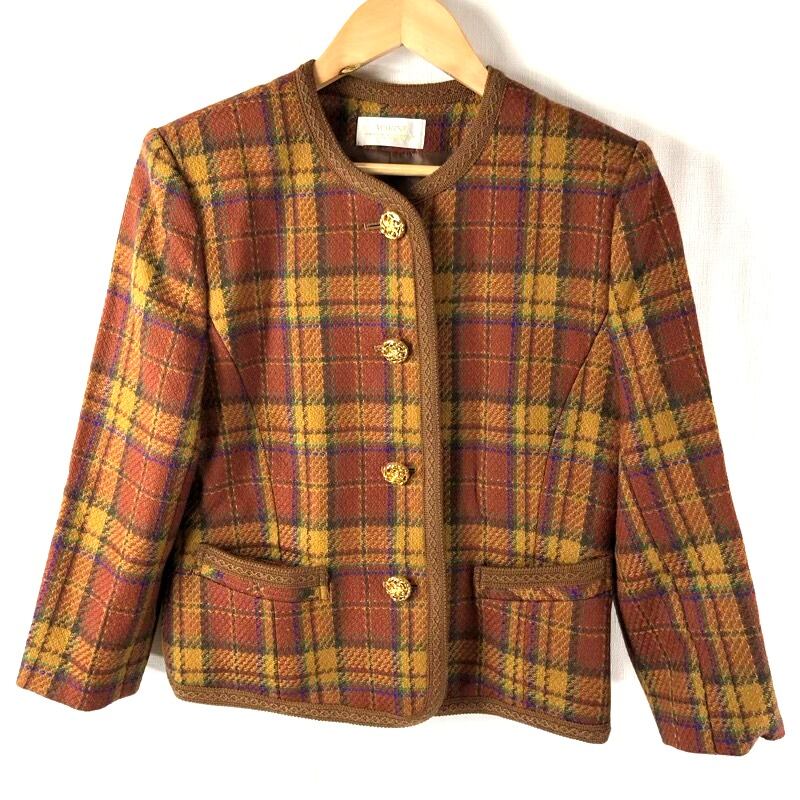 MARINE セットアップ ジャケット スカート チェック 金ボタン タグ付き 日本製 ブラウン系 Mサイズ 926313