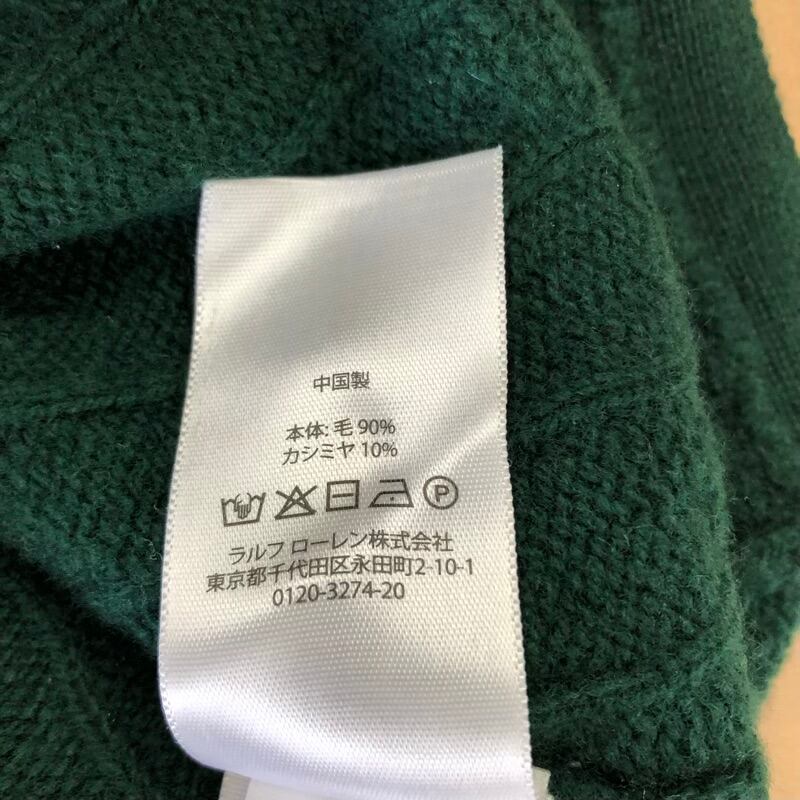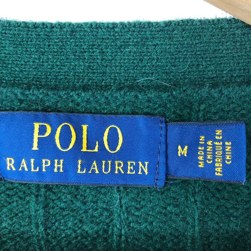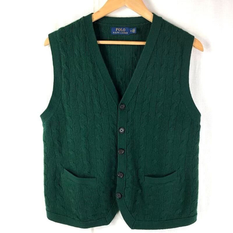 ポロラルフローレン POLO RALPH LAUREN Vネックベスト ウールカシミア混 前ボタン ポケット付き 緑 Mサイズ 927077
