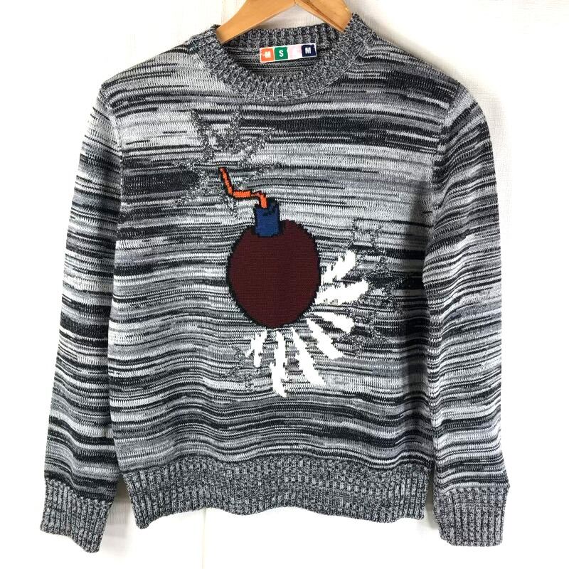 エムエスジイエム MSGM ニット 長袖 イラスト 星 ラメ ストライプ 黒 白 Sサイズ 928766